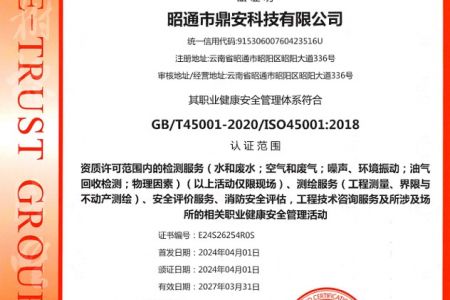2003年11月10日,昭通市鼎安科技有限公司成立,初始主要從事第三方安全工程技術(shù)服務(wù),經(jīng)多年運(yùn)營,發(fā)展為多專業(yè)綜合科技平臺,為社會提供多種專業(yè)技術(shù)服務(wù)工作。 現(xiàn)公司注冊資金為1200萬元,公司法定代表人:毛衛(wèi)旭。公司主要業(yè)務(wù):安全評價(jià)、安全標(biāo)準(zhǔn)化評審、安全工程技術(shù)服務(wù);環(huán)境監(jiān)測、職業(yè)衛(wèi)生檢測、檢驗(yàn);法律訴訟及非訴訟服務(wù);司法鑒定、固定資產(chǎn)投資項(xiàng)目節(jié)能服務(wù);工程咨詢;工程測量測繪;安全教育培訓(xùn)等。是安全生產(chǎn)服務(wù)、安全教育培訓(xùn)機(jī)構(gòu),也是環(huán)境監(jiān)測和職業(yè)衛(wèi)生服務(wù)機(jī)構(gòu),同時(shí)也是綜合的檢測檢驗(yàn)、綜合科技平臺服務(wù)機(jī)構(gòu)。多年來為公、檢、法、司、軍、警、海關(guān)、仲裁、安監(jiān)、工礦商貿(mào)企業(yè)、社會團(tuán)體及個(gè)人提供多專業(yè)技術(shù)服務(wù)。